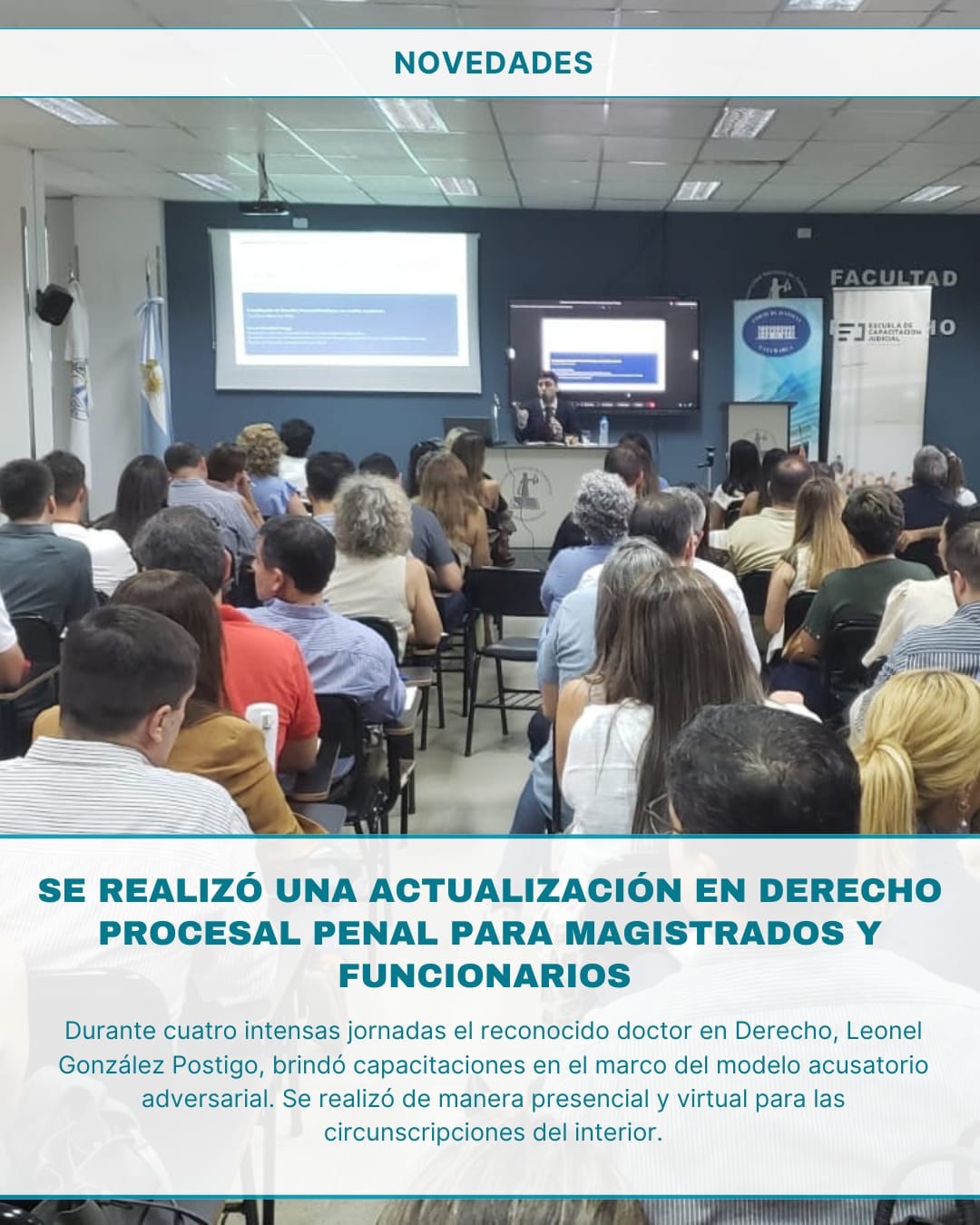 1°) Declarar de carácter obligatorio la capacitación denominada “Actualización en Derecho Procesal Penal para un Modelo Acusatorio Adversarial” dictado por la Escuela de Capacitación Judicial a realizarse los días 17, 18 y 19 de marzo de 17 a 21 horas y el día 20 de marzo de 16 a 18