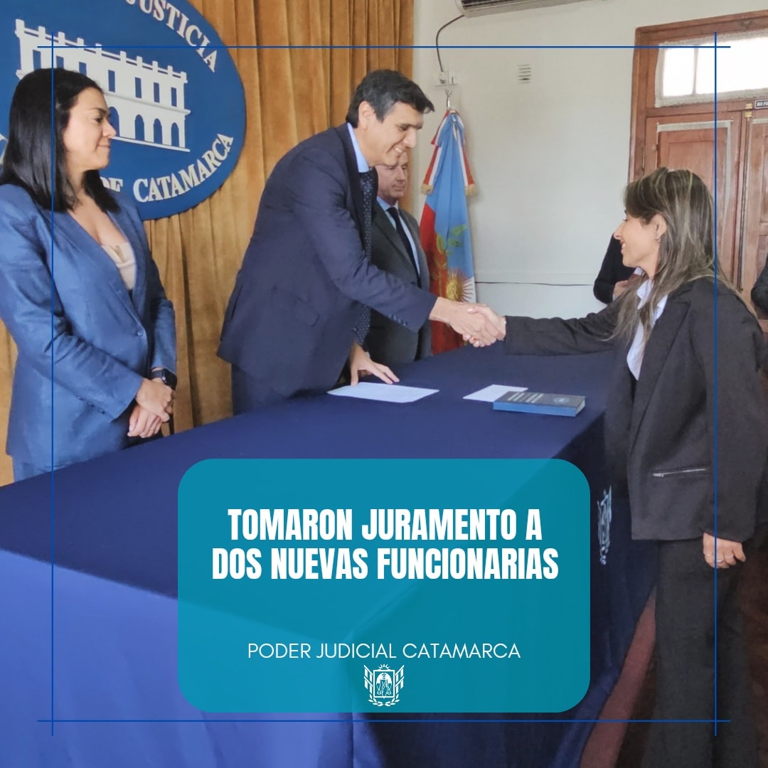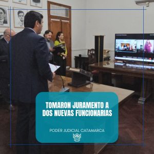 Esta mañana la Corte de Justicia de la provincia tomó juramento a dos nuevas funcionarias judiciales. La Dra. Cristina Tamara Bricco Moreno juró por videoconferencia y cumplirá funciones transitoriamente y en comisión como secretaria de la Fiscalía Civil de la 5ta Circunscripción Judicial con asiento en Tinogasta.